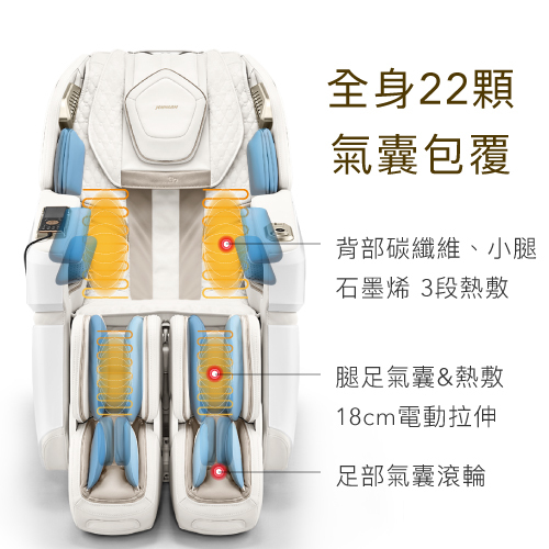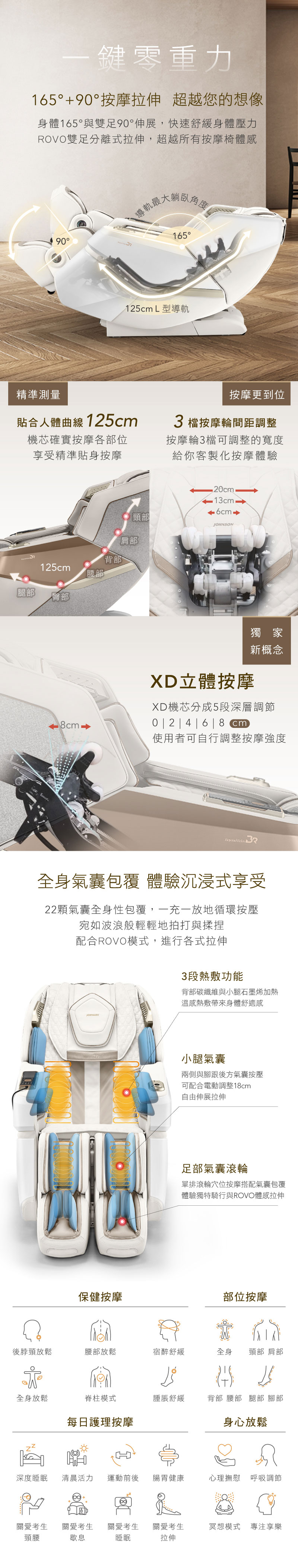 導軌躺臥角度達165°,搭配雙足90°拉伸,超越所有按摩椅體感