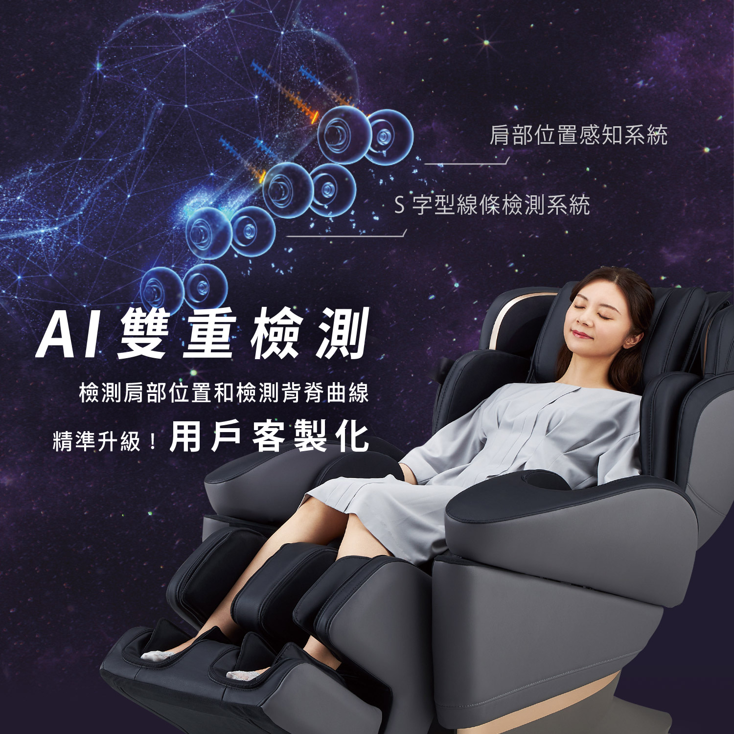.AI雙重檢測Plus,8處精準感應肩頸S背脊線條