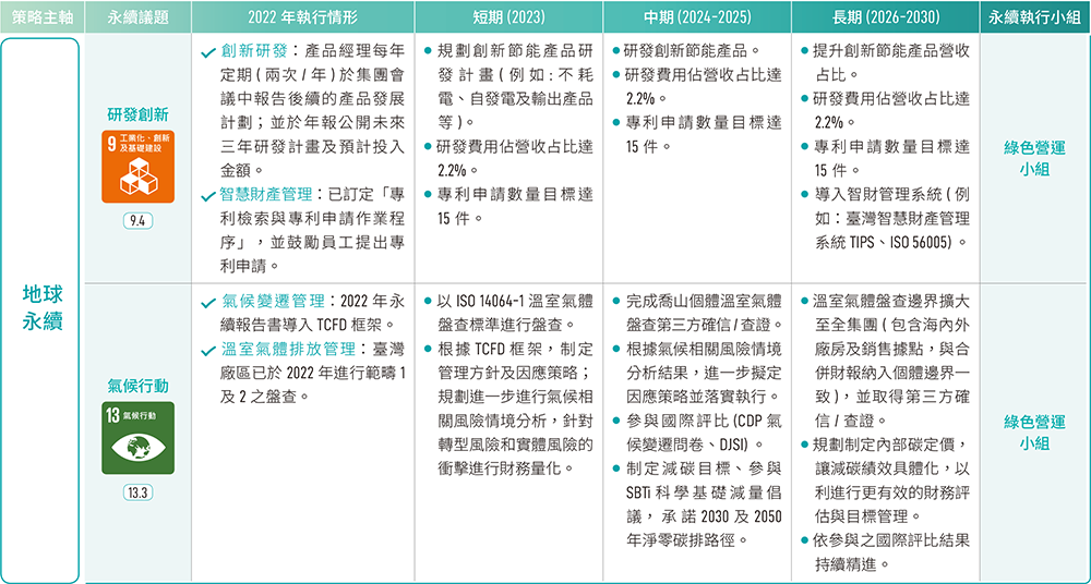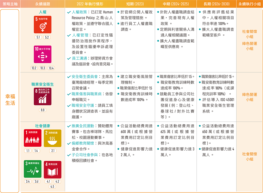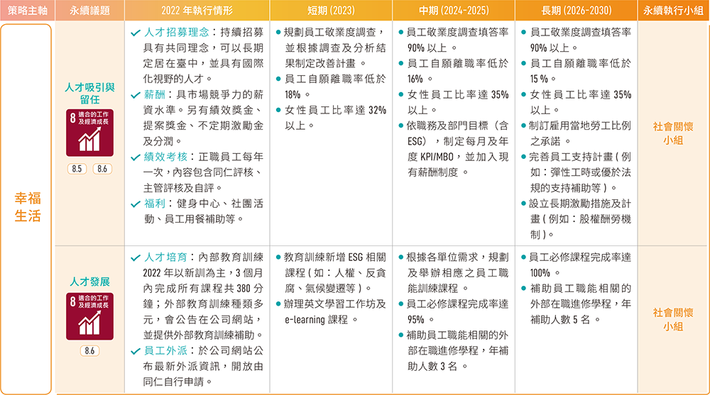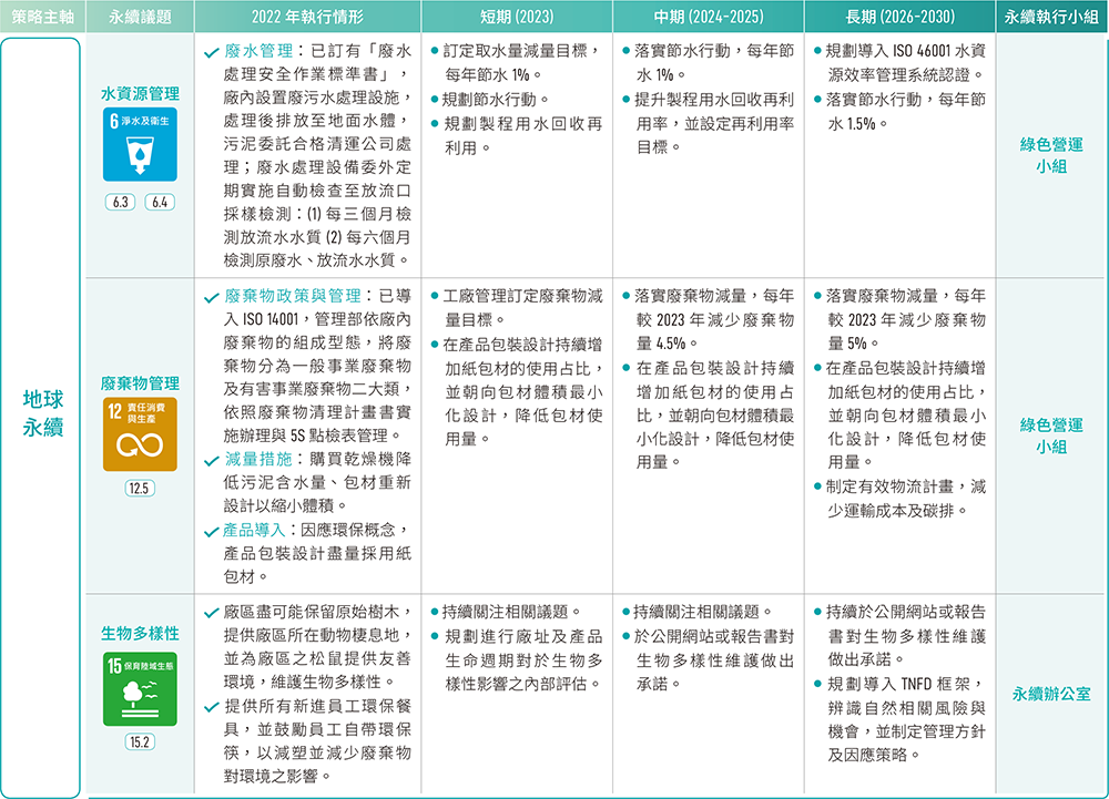 規劃符合ESG策略之行動,實際推行並達成ESG目標,定期匯報成果給委員會檢核。