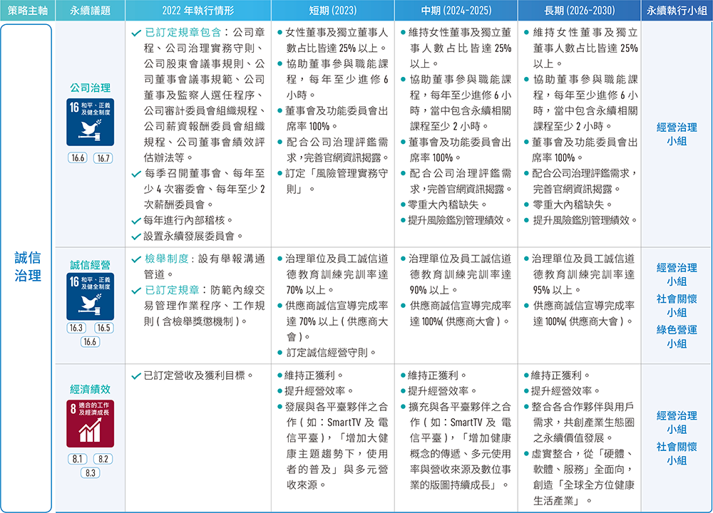 制定ESG策略,監督執行情形,檢核ESG目標與績效。