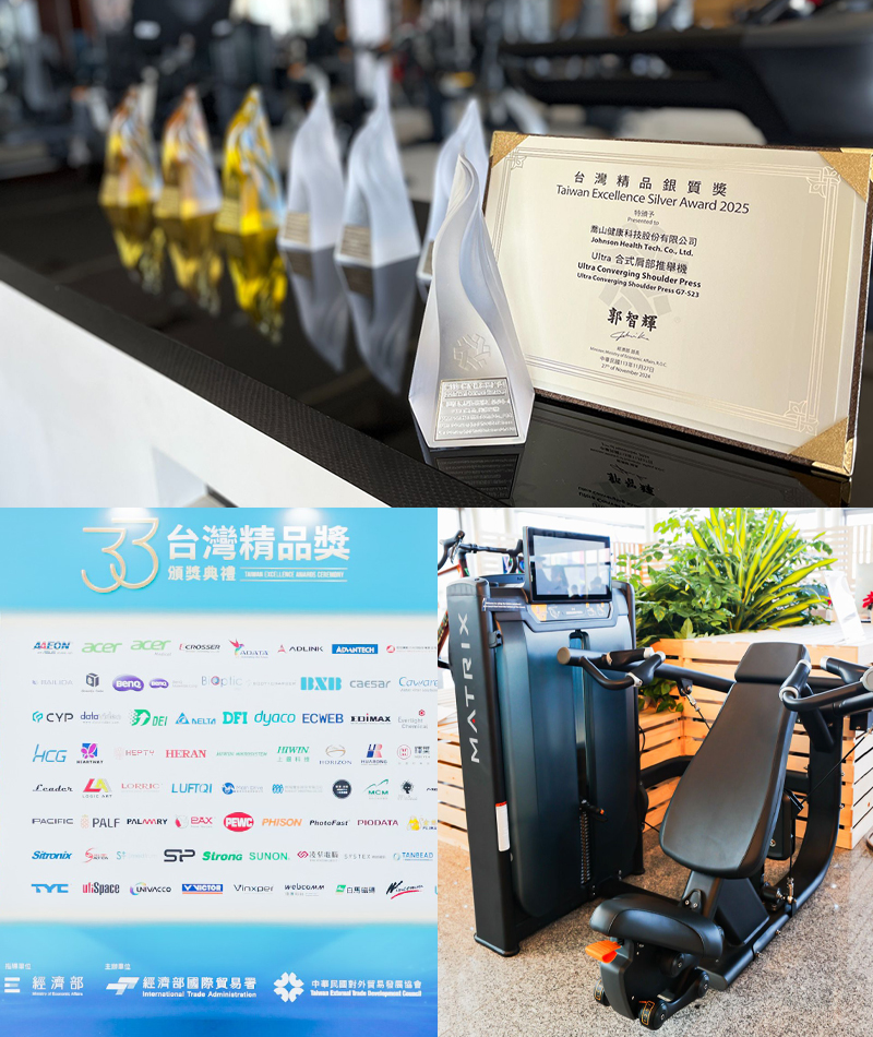 Matrix Ultra Converging Shoulder Press 榮獲第33屆台灣精品銀質獎肯定台灣精品獎是國家年度指標性的選拔活動,由國際評審針對研發、設計、品質、行銷四大項目,評選出年度最具「創新價值」之產品授獎,作為臺灣產業的表率。今年第33屆台灣精品獎選拔共有近900件產品報名,僅30件能入圍角逐金銀質獎,喬山以「Ultra Converging Shoulder Press」獲得評審青睞進入最終決選,展現產品創新與使用者體驗上的卓越實力。