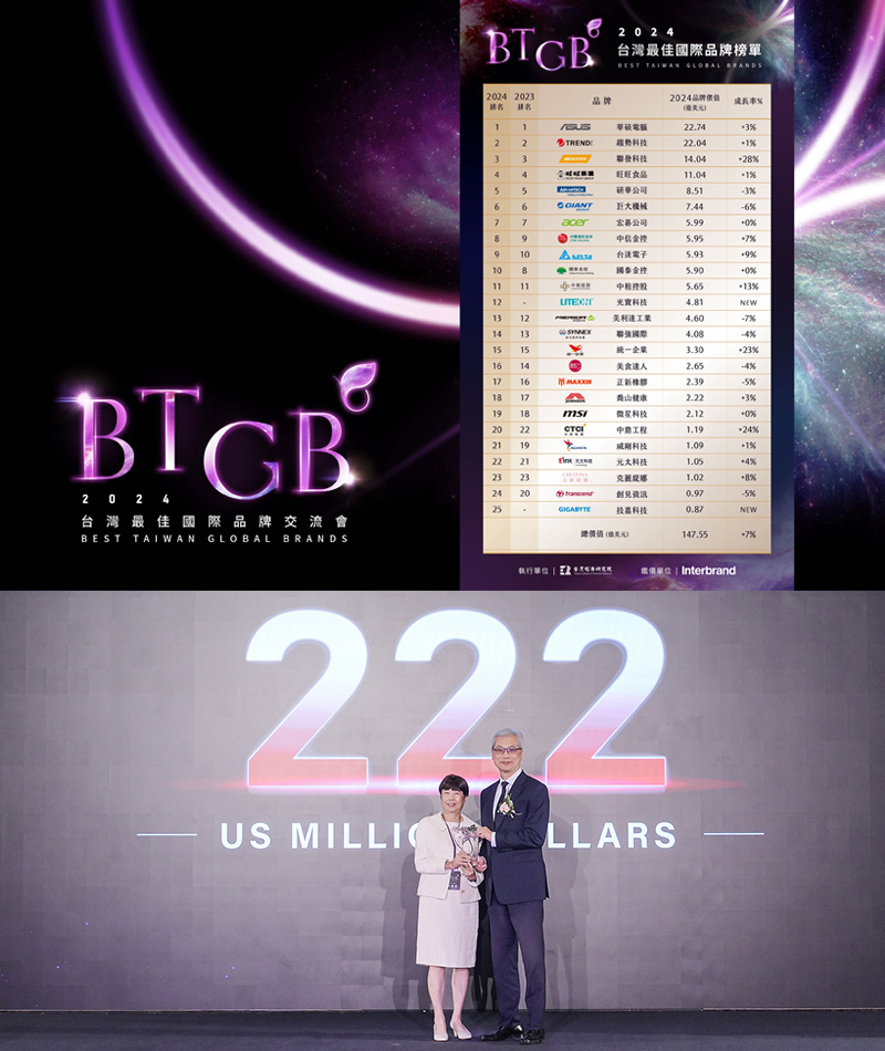 這是喬山連續19年獲獎,品牌價值從2.14億美金,成長至2.22億美金。