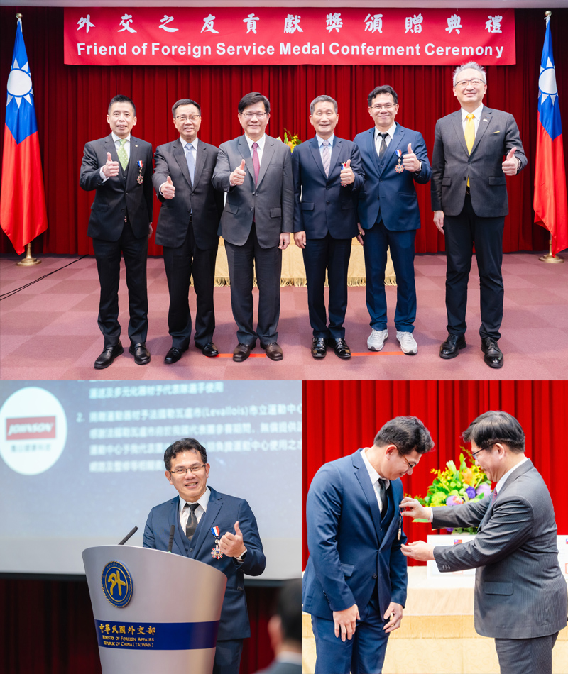 企業慷慨支援巴奧台灣隊 獲外交部頒贈「外交之友」2024年巴黎奧運台灣代表隊斬獲佳績,外交部長林佳龍向3間企業頒發「外交之友貢獻獎」,感謝其在賽會期間全力支援後勤工作,讓台灣隊選手可以專注為國爭光。受獎代表分別為漢典食品股份有限公司總經理鍾紀銘、長榮航空股份有限公司協理林玄修、喬山健康科技股份有限公司業務總監陳榮達。總統府國策顧問林見松,以及巴奧時任駐法代表、現任外交部政務次長吳志中皆出席觀禮。